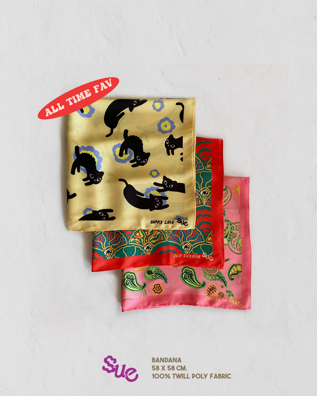 (Bandana, a pony tie, headband, and wrap around neck) - The design is exclusive prints by SUE Brand